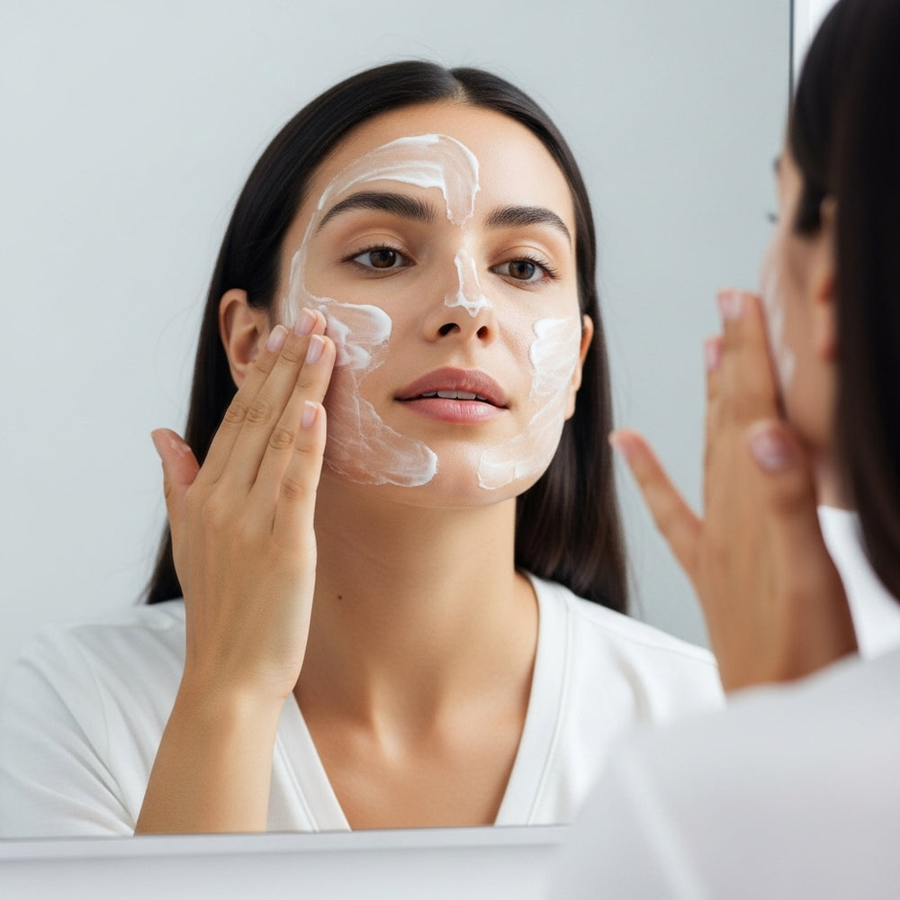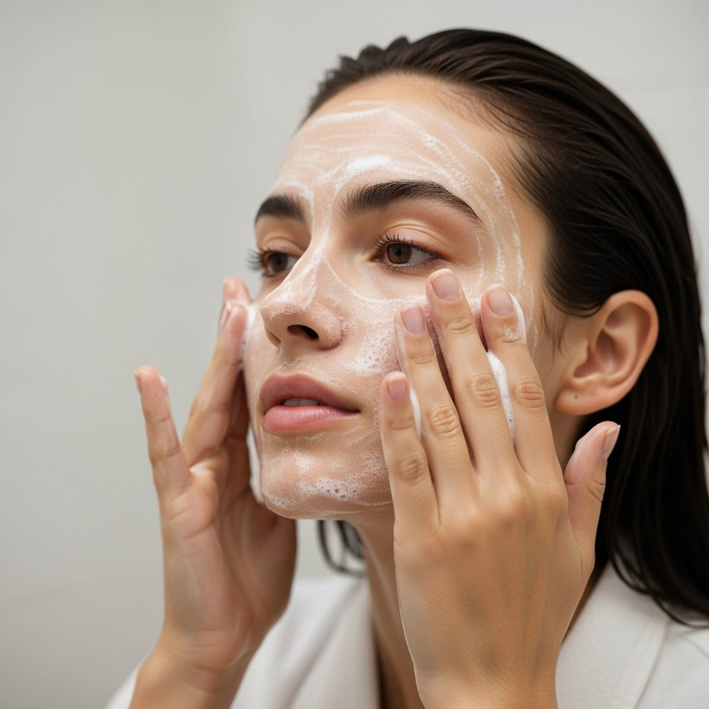 Comece com a Loção de Limpeza Sisyphus sobre a pele úmida. Massageie suavemente com movimentos circulares e enxágue. A pele deve ficar limpa, fresca e pronta para receber os ativos.
