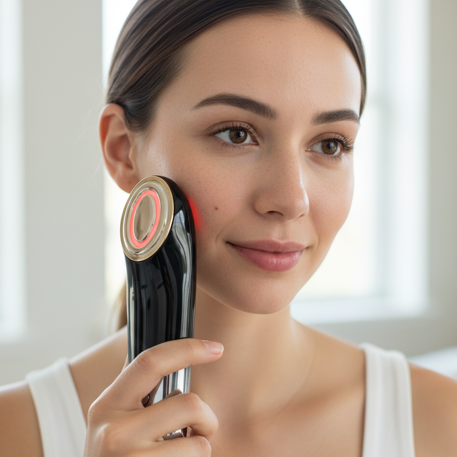 O Glowy Firm Booster une microestimulação EMS, luz LED vermelha e massagem sônica para oferecer resultados dignos de clínica estética no conforto da sua casa. Cada sessão estimula o colágeno, ativa a circulação e potencializa a absorção dos seus cosméticos favoritos — deixando a pele visivelmente mais firme, lisa e radiante desde as primeiras aplicações.